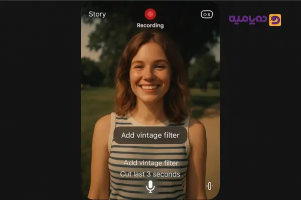ویژگیها: امکان ویرایش با فرمان صوتی؛ مثلاً با گفتن “Add vintage filter” یا “Cut last 3 seconds” افکت یا برش اعمال میشود.